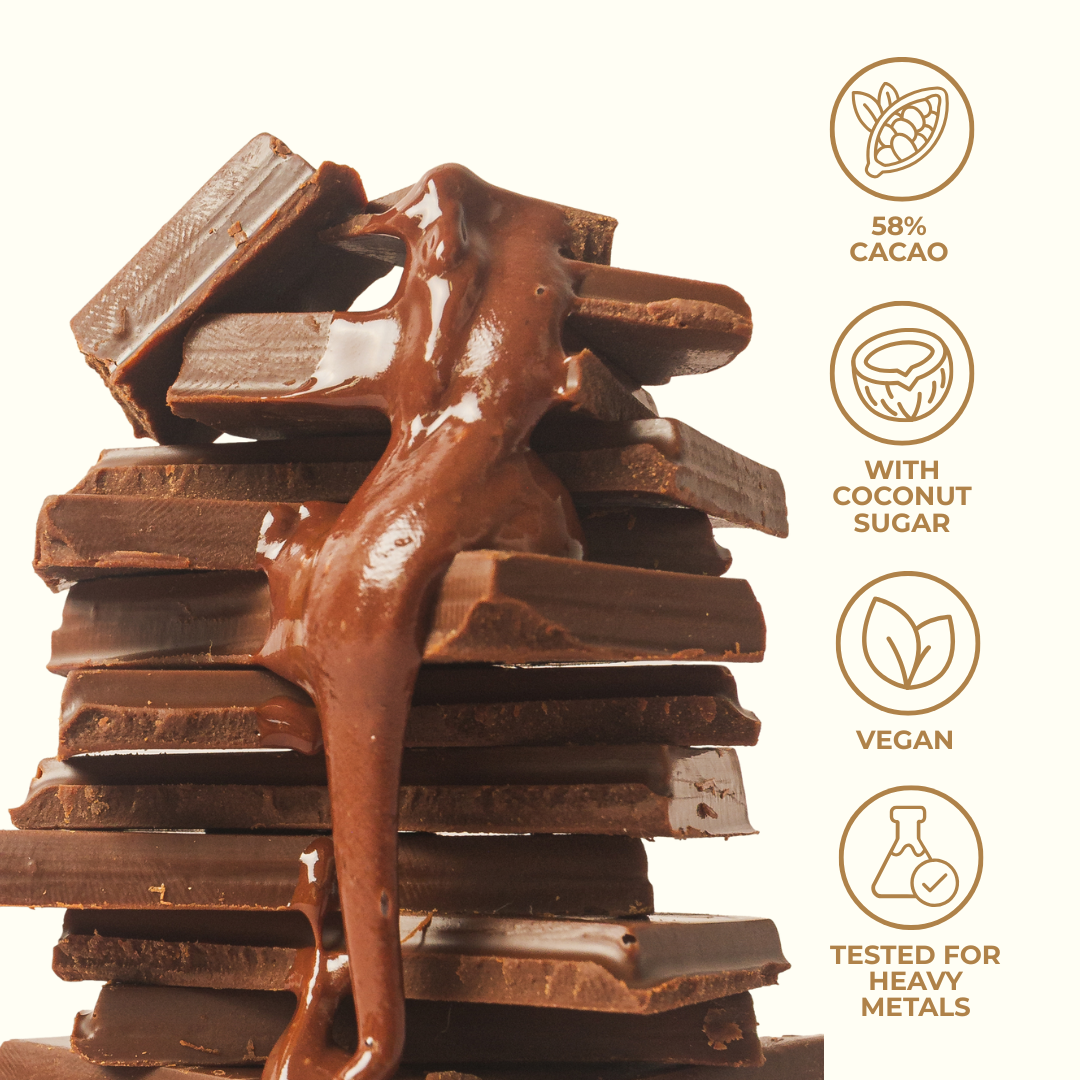 A creamy chocolate made with coconut milk and sweetened with coconut sugar, for a smooth, dairy-free treat with a subtle tropical sweetness.